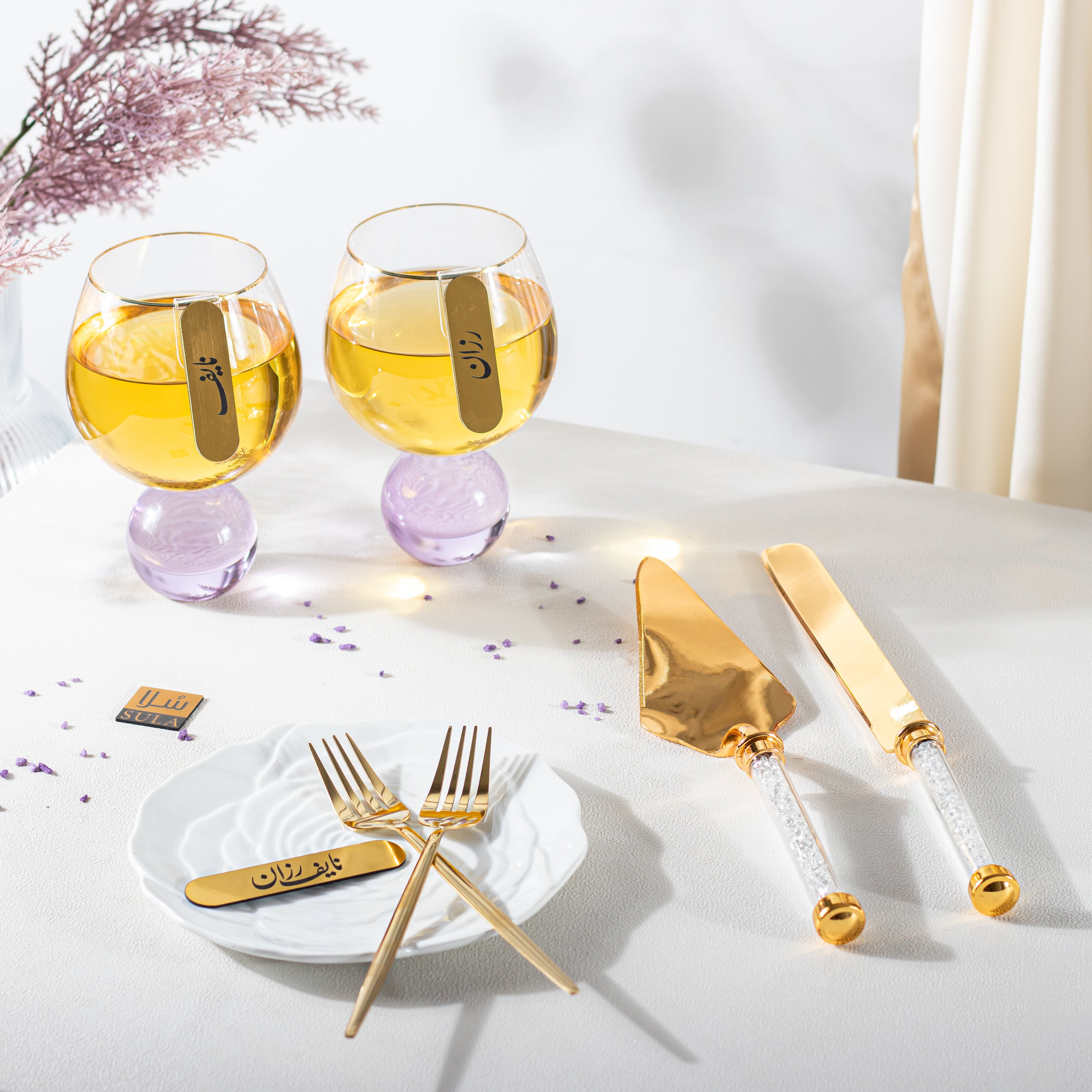 - يحتوي على ( كاستين - شوكتين - سكين و حامل كيك - صحن )