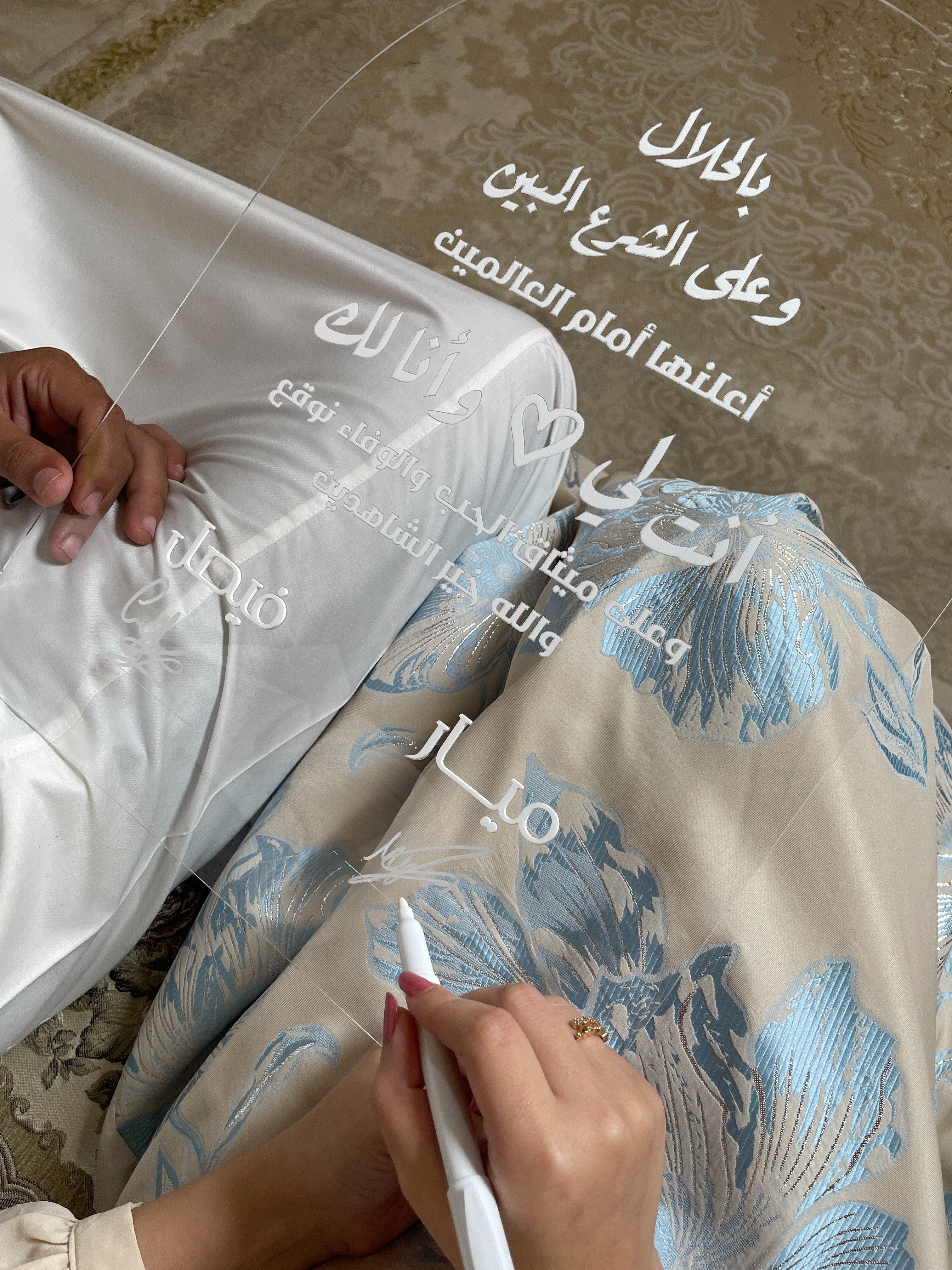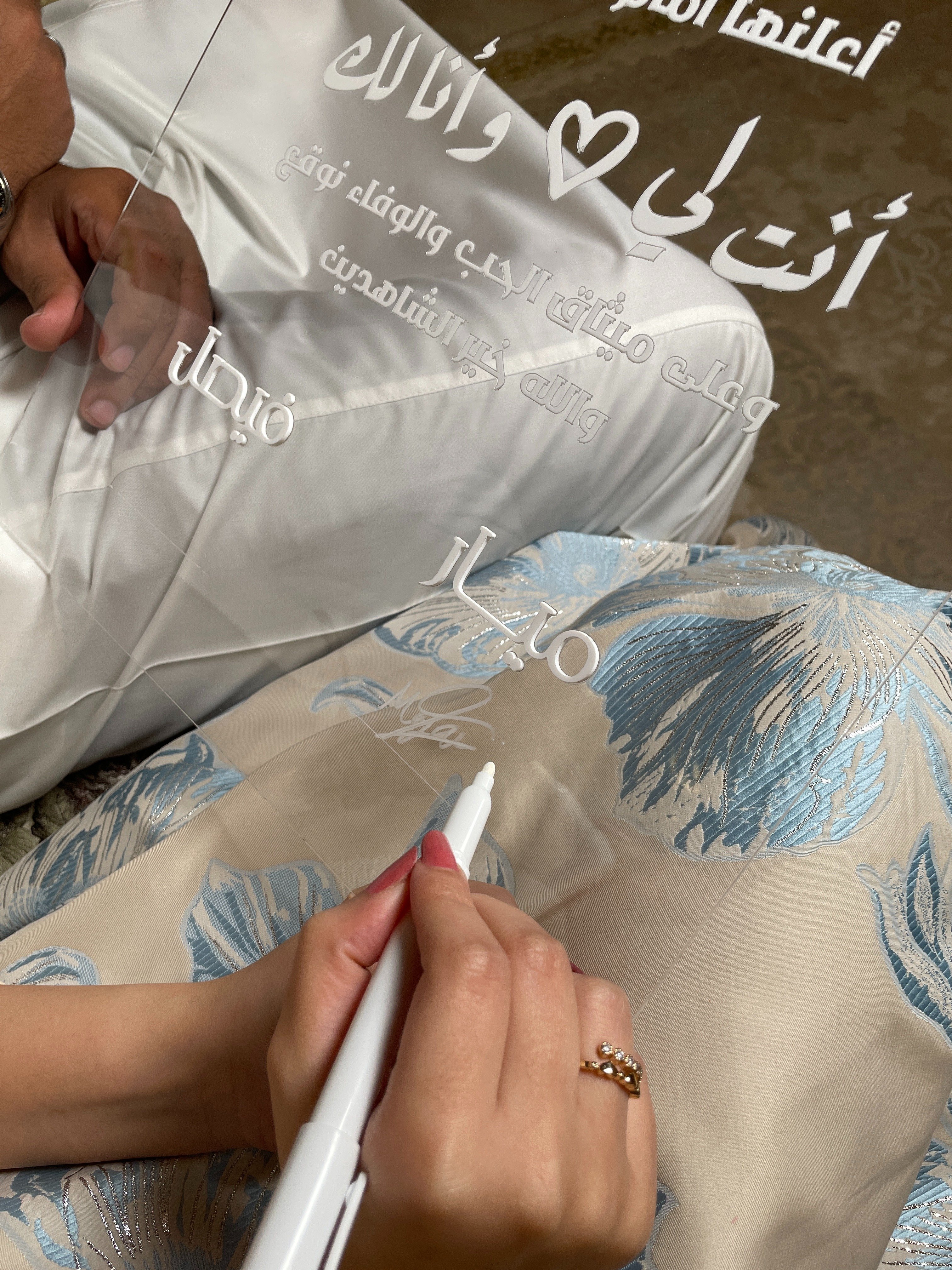 لوح توثيق لحظة توقيع العقد بطريقة فاخرة مع التوقيع بأسماء العروسين مناسب لتخليد الذكرى و التصوير