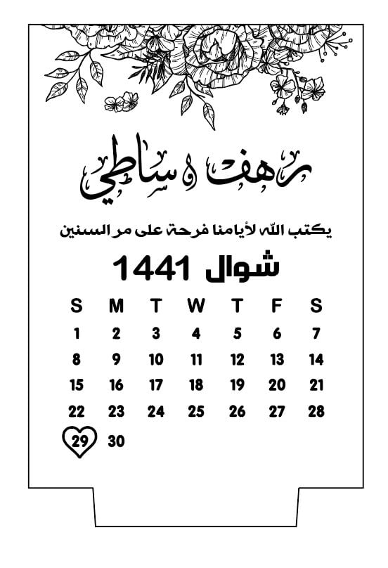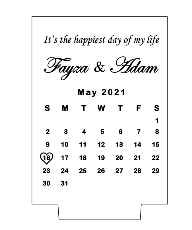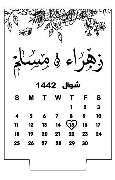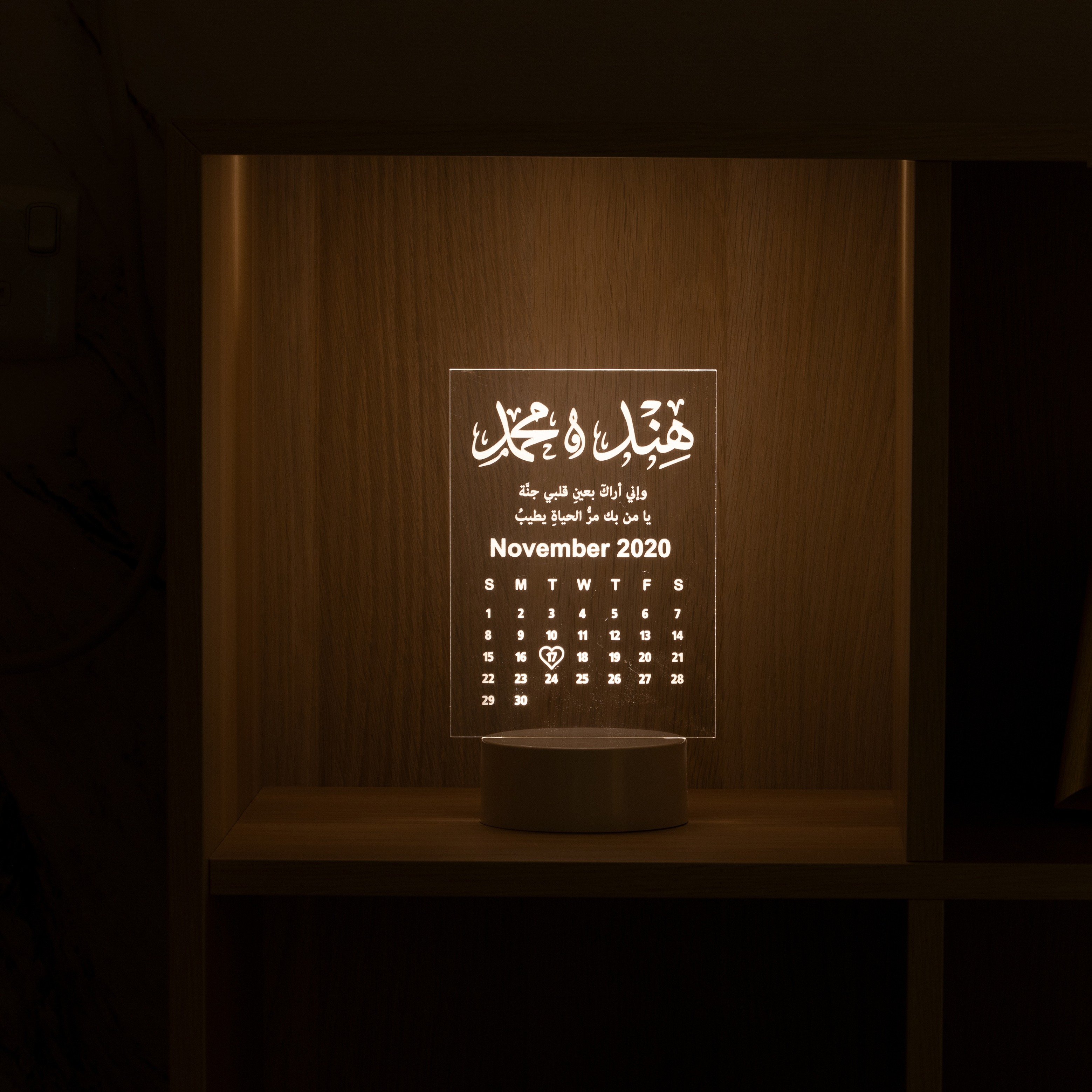 ابجورة العروس مضيئة على شكل تقويم و علامة على التاريخ المراد توثيقه .