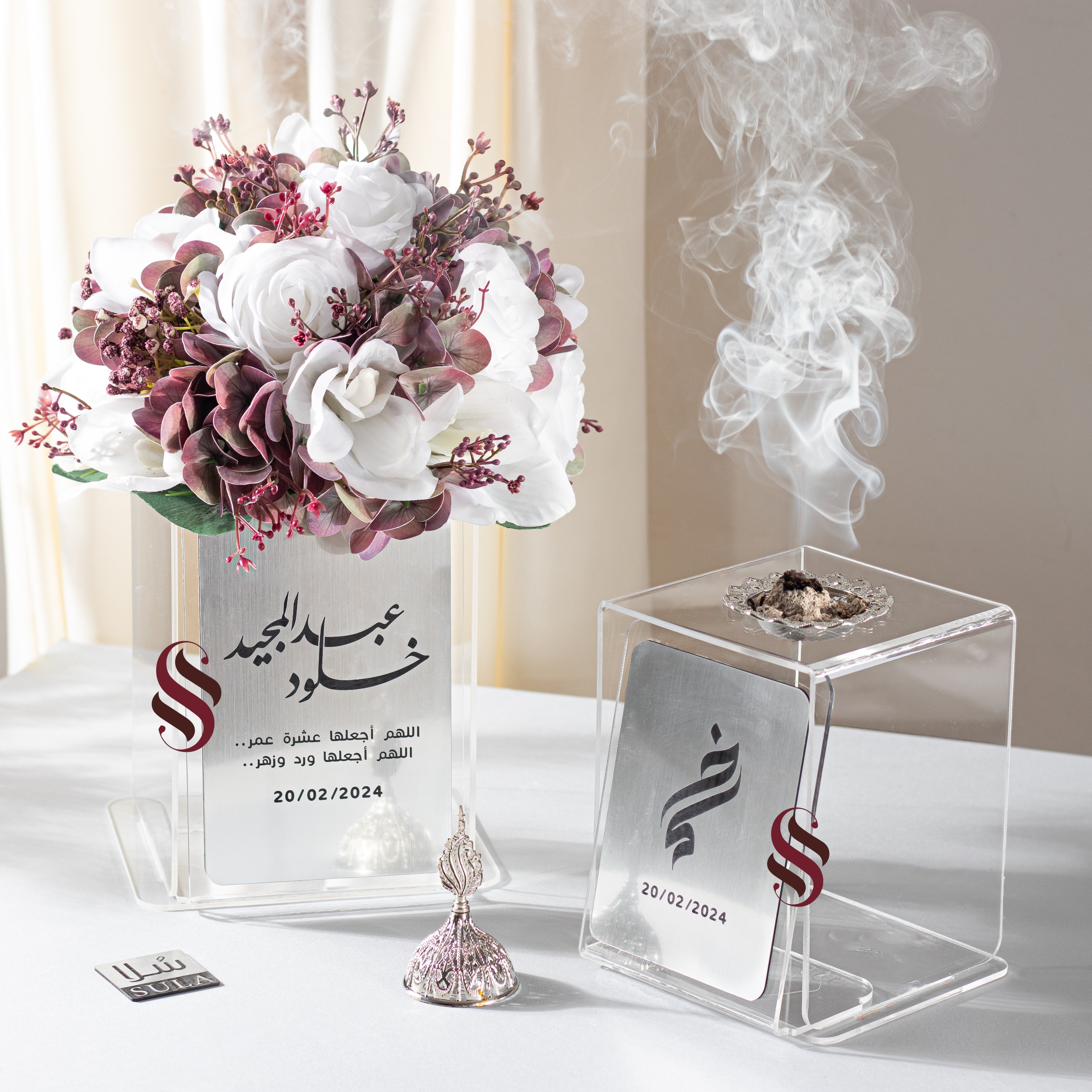 طقم مكون من مبخرة و بيت المسكة . يجعل من تفاصيلك متناسقة .. بنفس الشكل و الخط و اللون