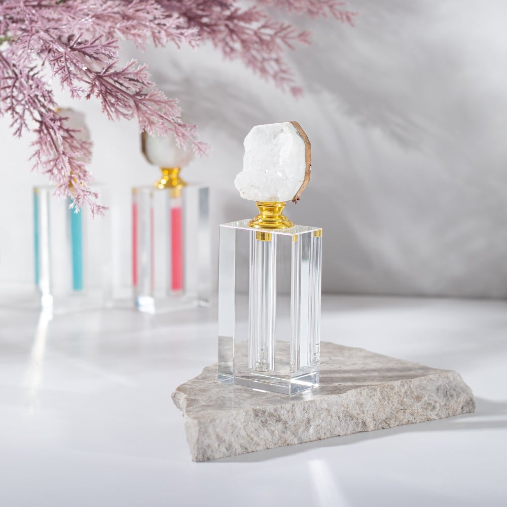 الحجر المستخدم : الحجر أعلى الكريستالة هو حجر طبيعي 100 في المئة من العقيق المغربي و بدون معالجة .