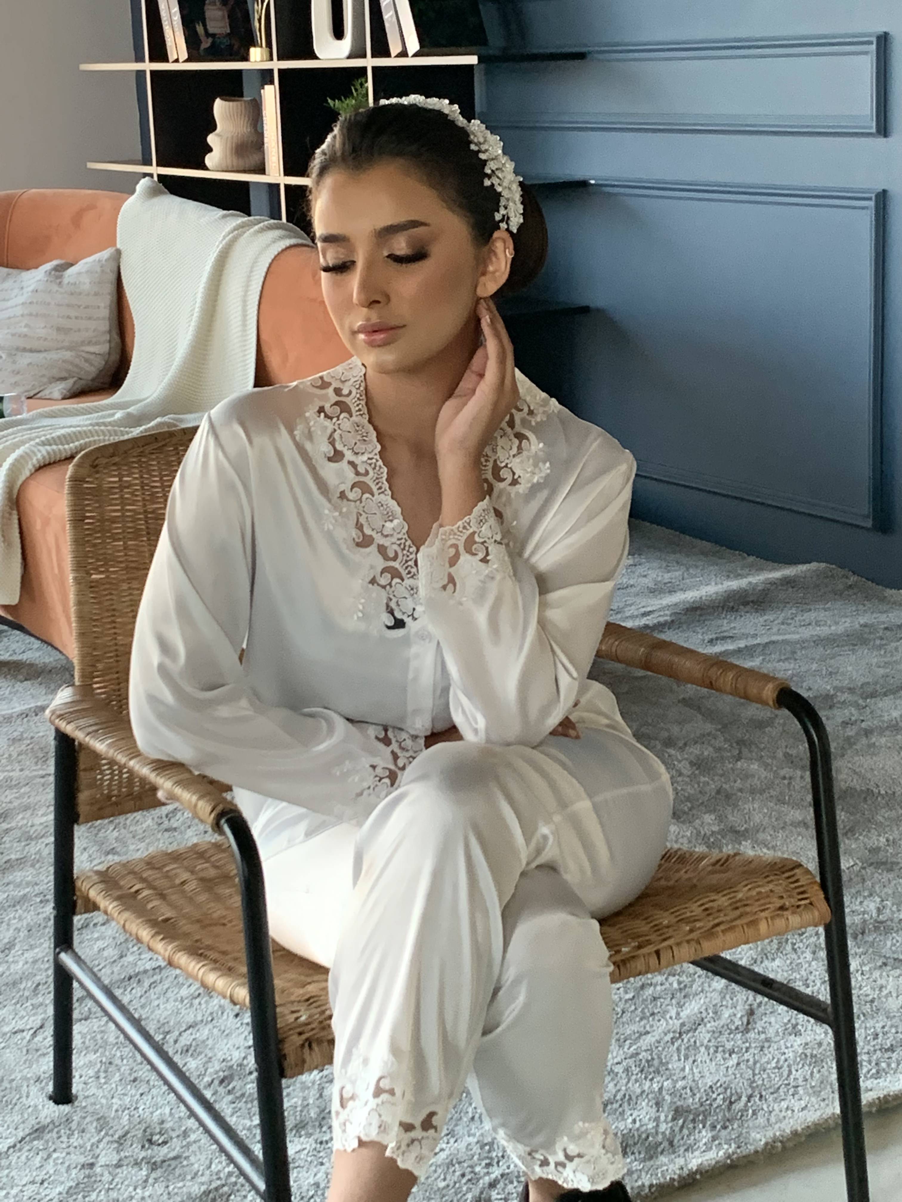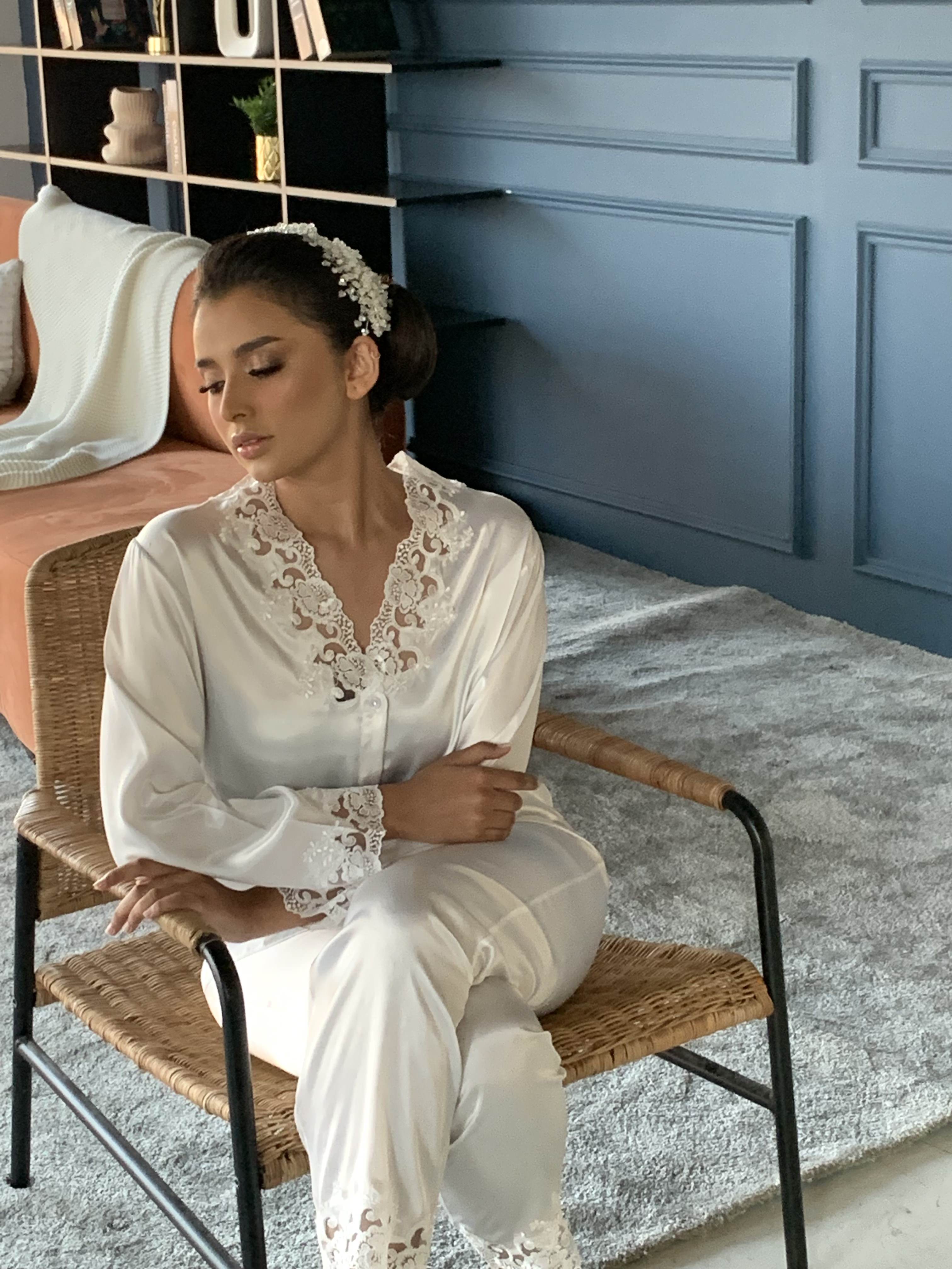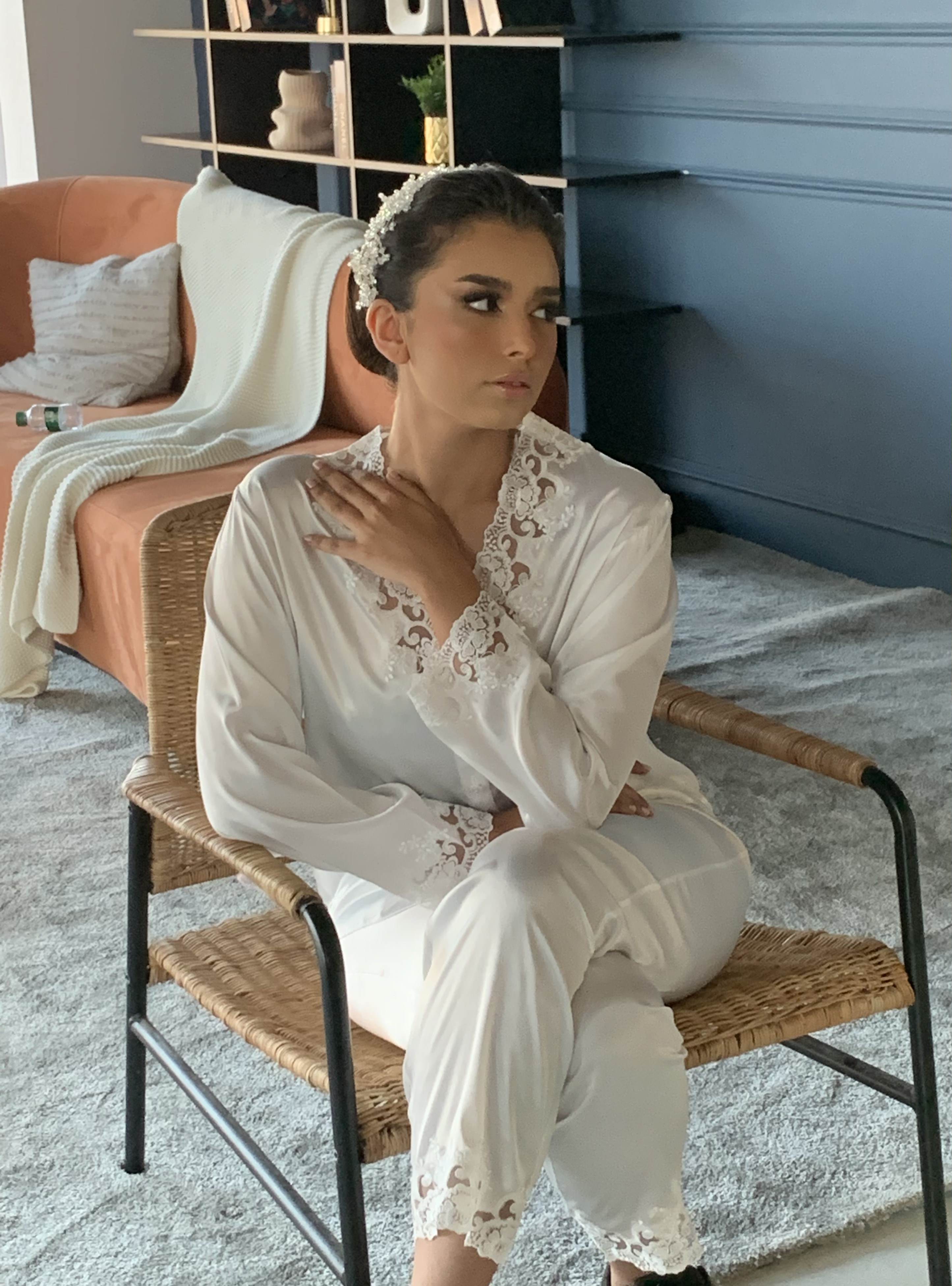 بجامة عروس - ابيض دانتيل :