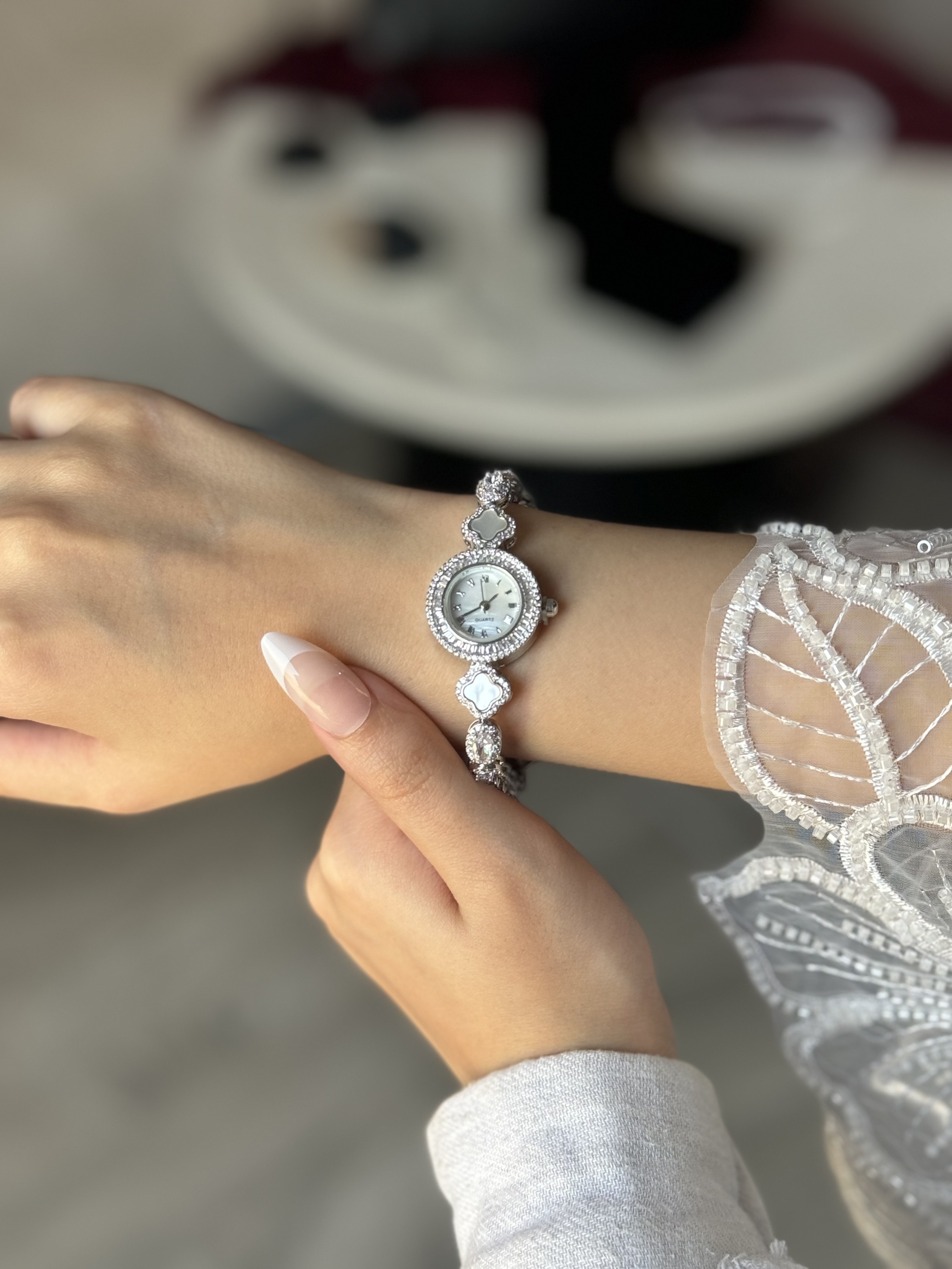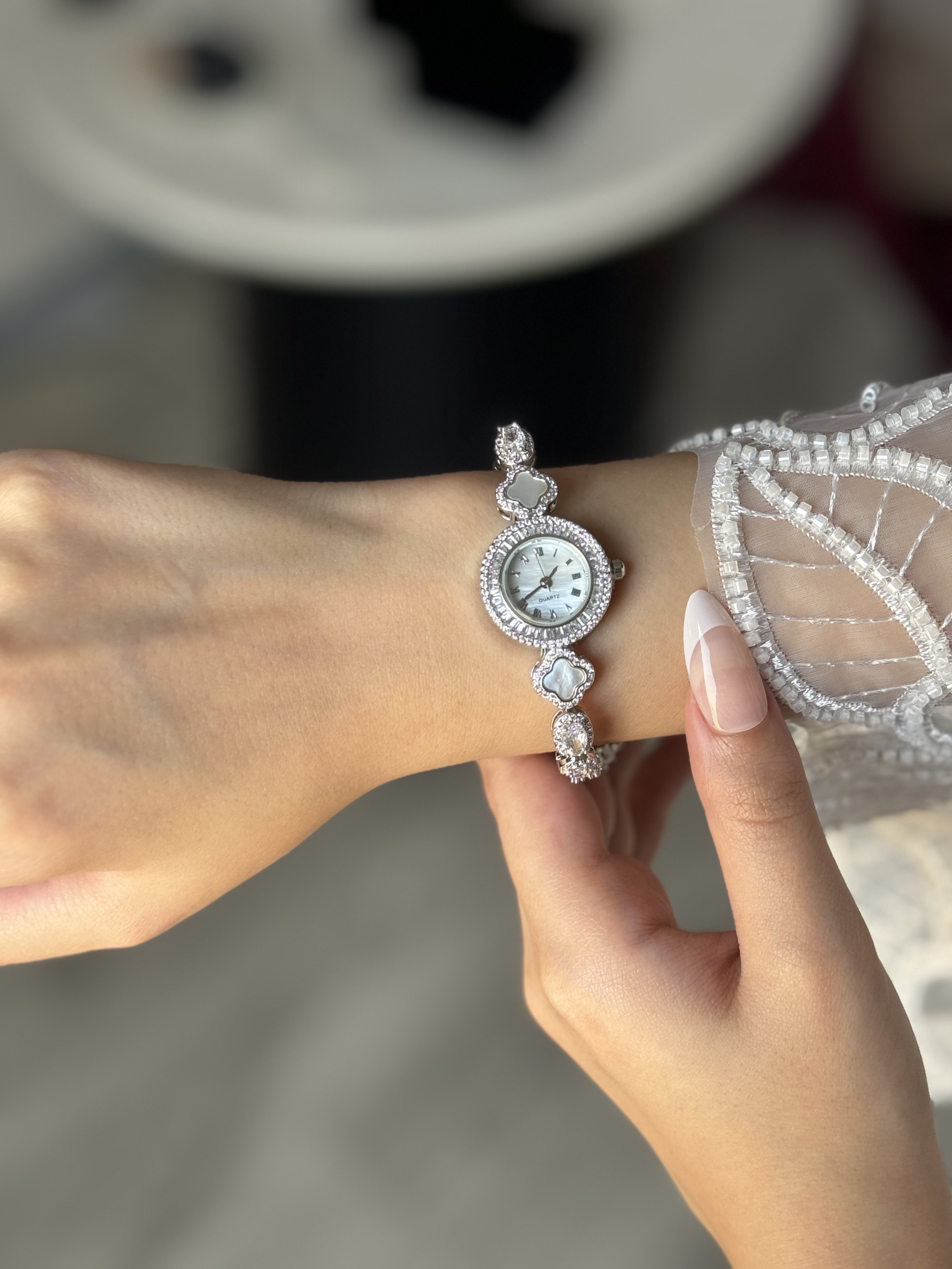 وتحتوي على أحجار زركون لامعة تزيّن إطارها و سيرها ، مما يضيف لمسة من التألق.