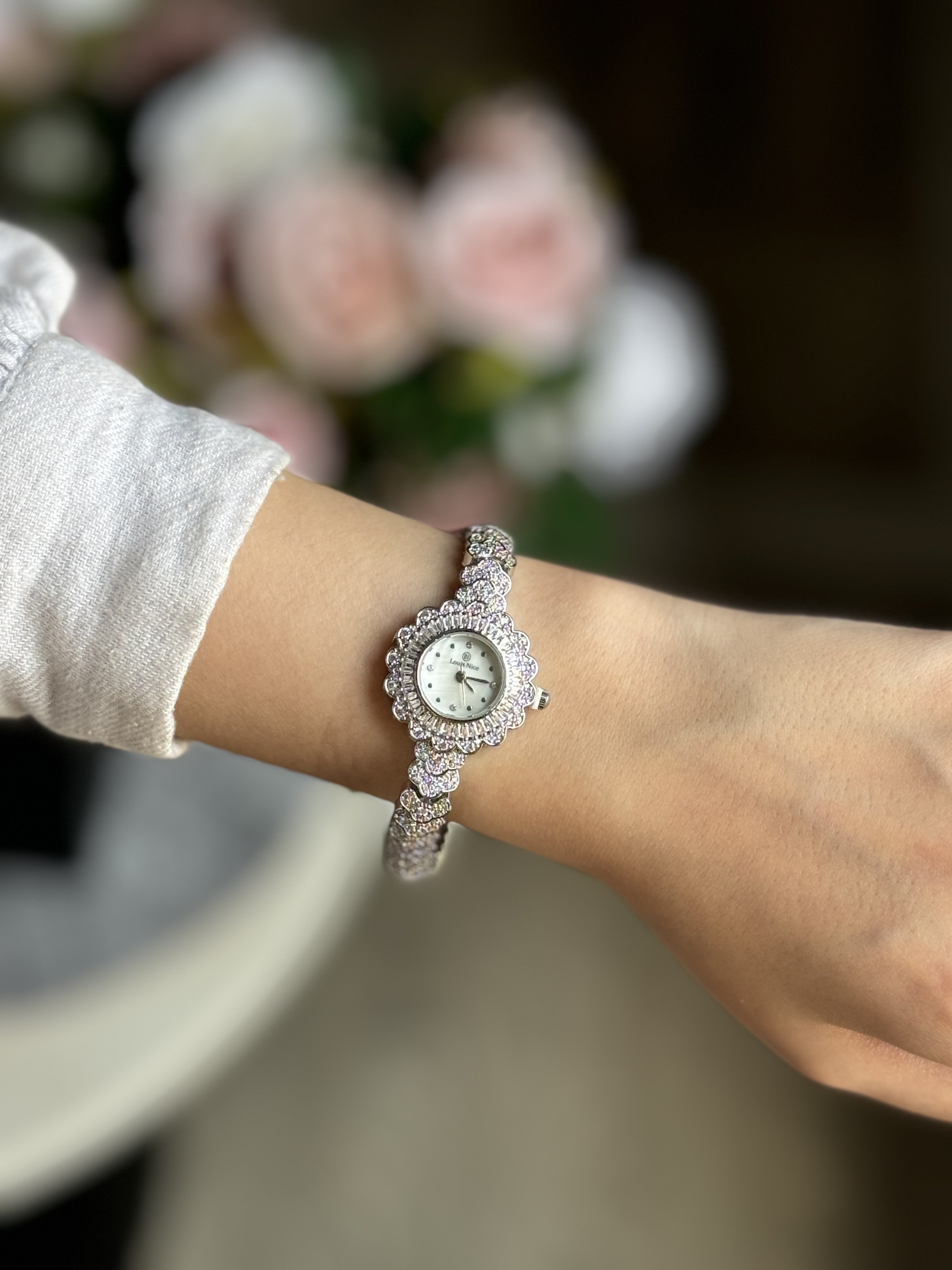 وتحتوي على أحجار زركون لامعة تزيّن إطارها و سيرها ، مما يضيف لمسة من التألق.